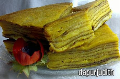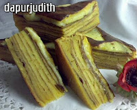 Cake ini aku buat kemarin lalu sebelum berangkat jalan2 dengan keluarga. Pikir2 untuk camilan dalam perjalanan jarak jauh. Judith sih lagi pingin cake lapis ini, yang mungkin menurutku bahan bakunya nggak bikin eneg. Jadi nggak pake terigu melainkan pake saja tepung beras ketan. Ternyata memang enak lho, sambil ngopi2 stop ditaman pinggir jalan sambil melihat2 pemandangan nan Asri dan Alami. Dengan demikian suamiku bisa sedikit leyeh2 meluruskan kaki, pegel karena 2 jam lebih nyupir.